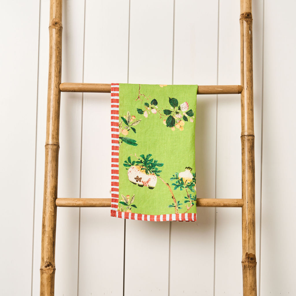 Tea Towel - Pure Linen - Pomegranate Green - Vibrant Kitchen Textile